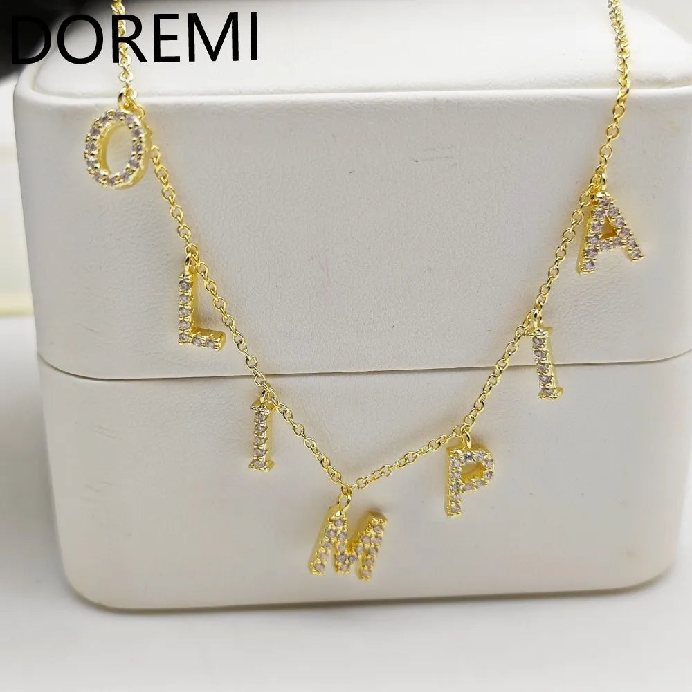 DOREMI Custom Jewelry Gift Design Women Necklace Letters Custom Name Color CZ 9mm Size Initial Letters Choker Chain Necklace