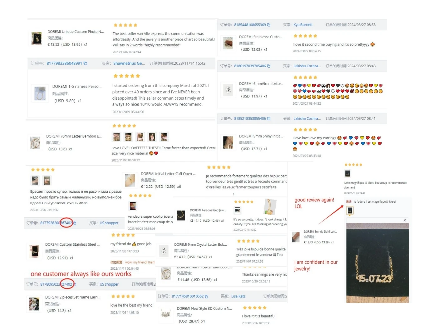 A3: Our custom jewelry mostly did by stainless steel materials, no tarnish, no allergic, nice surface and good plating process. each finished order will show you picture for inspection before shipping.
