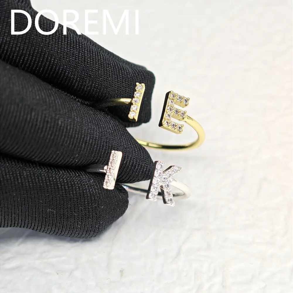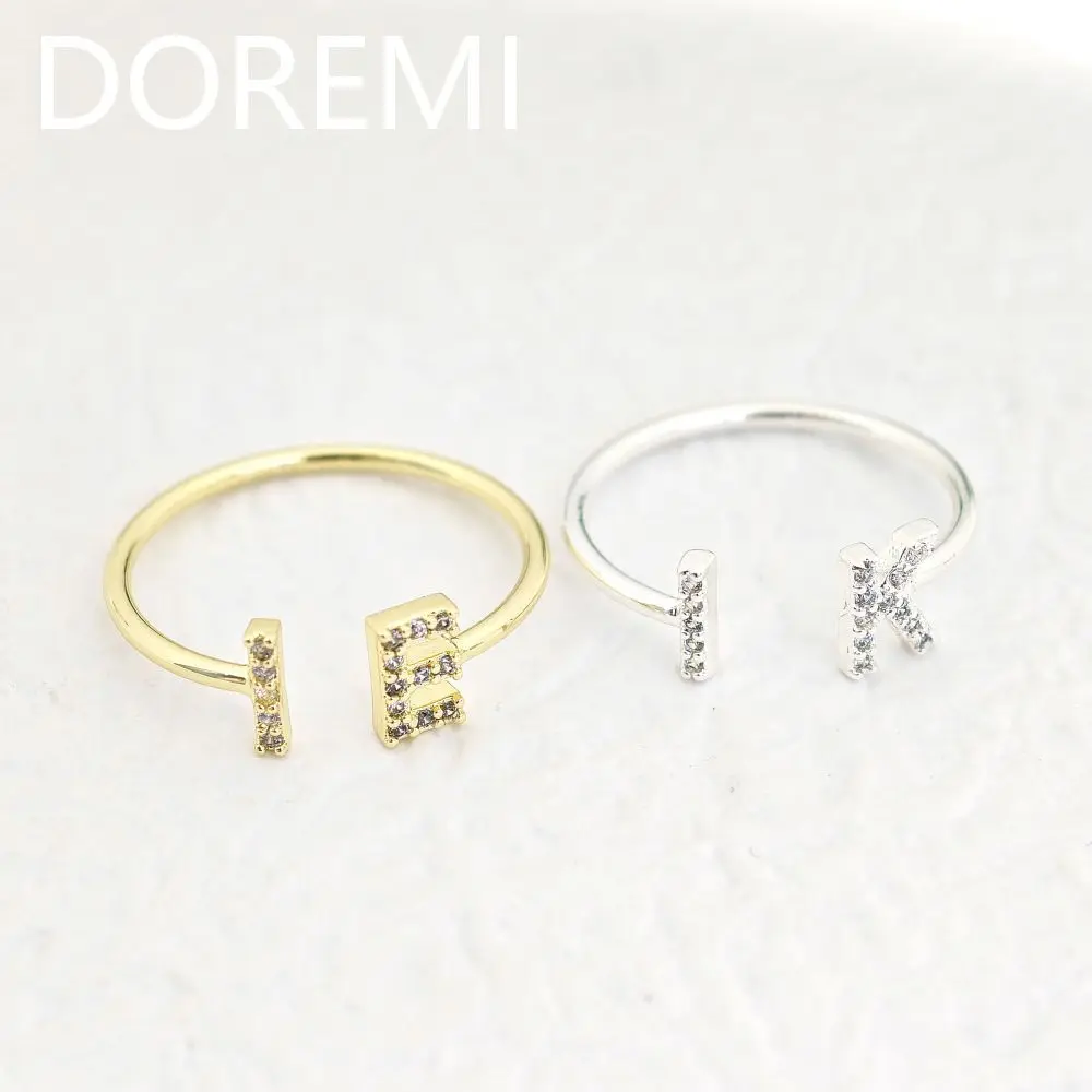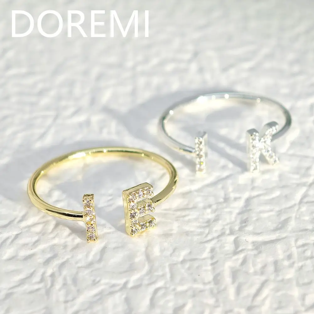 DOREMI Personalized Gift Jewelry 6mm Letter Zircon Stone Custom Initial Ring Women Cuff Initial Letter Ring