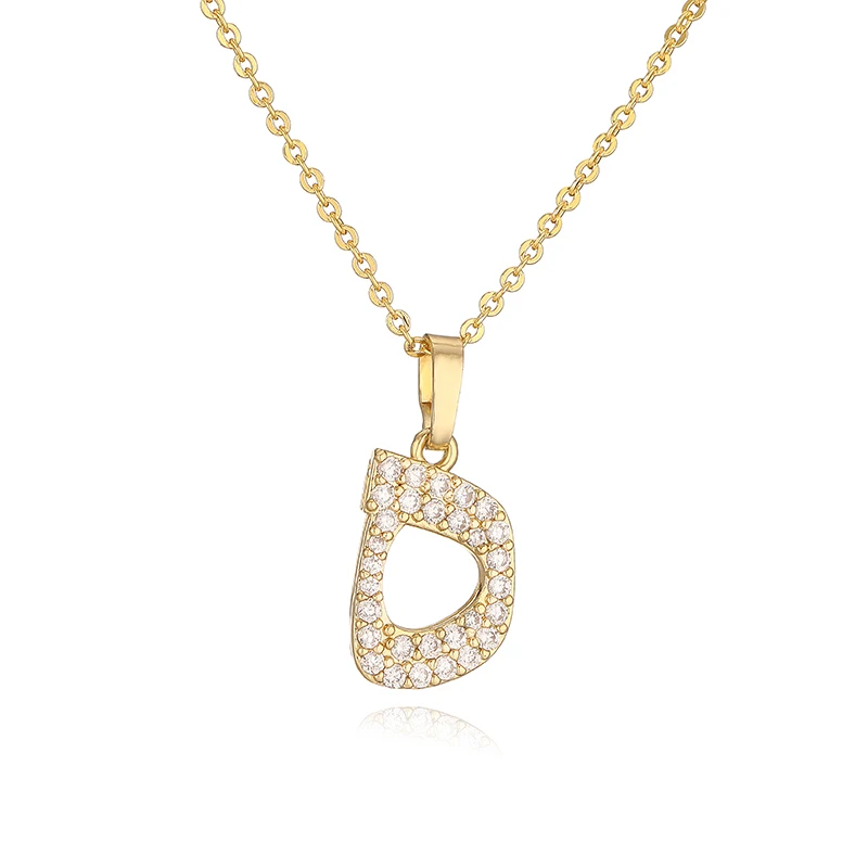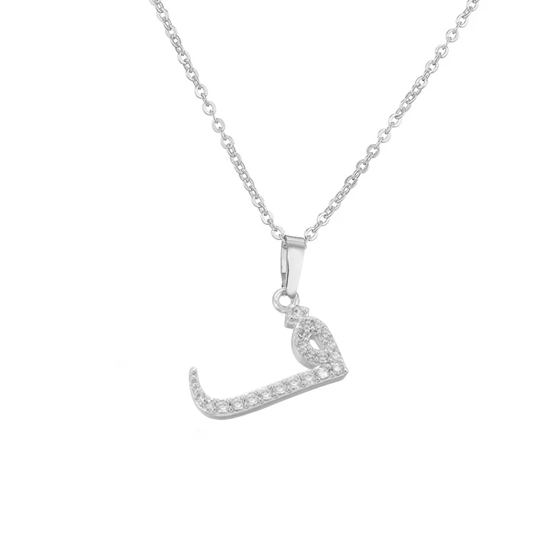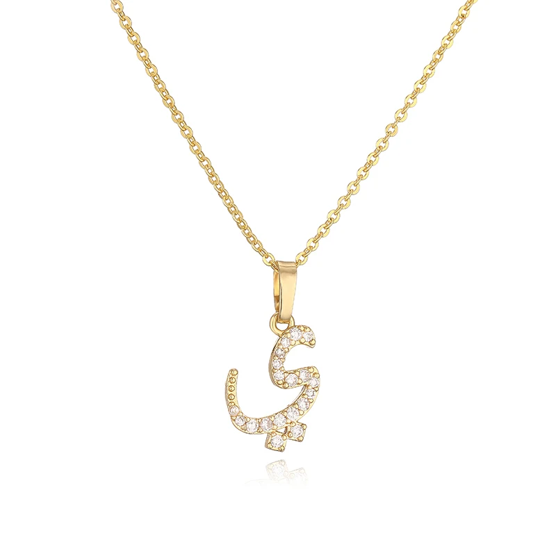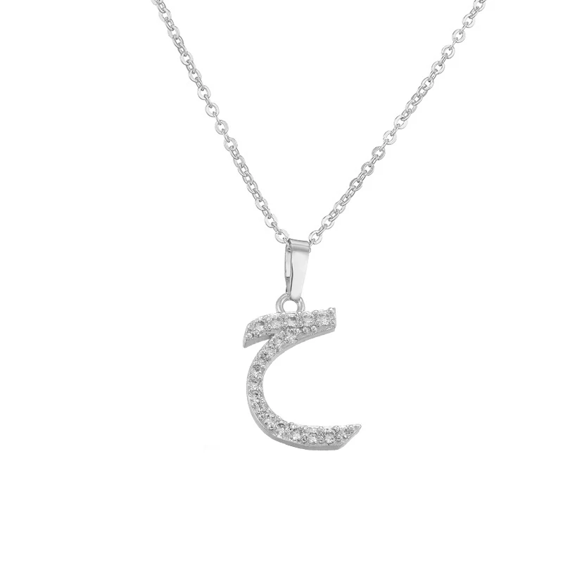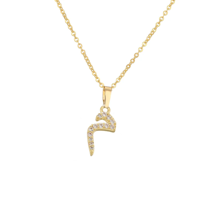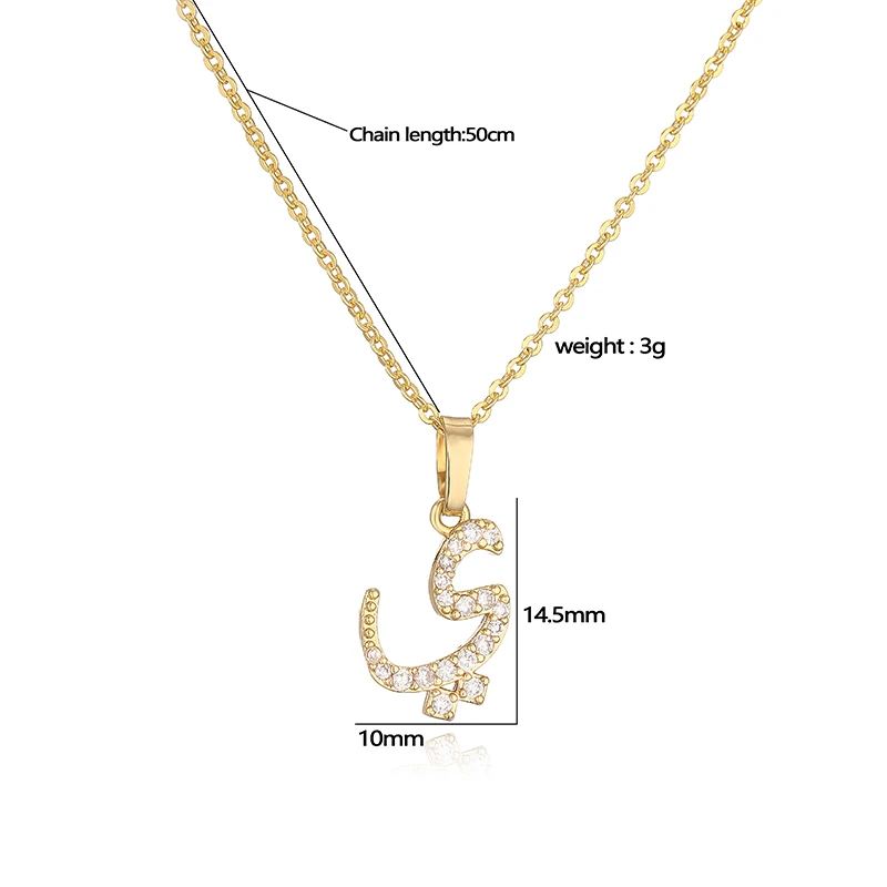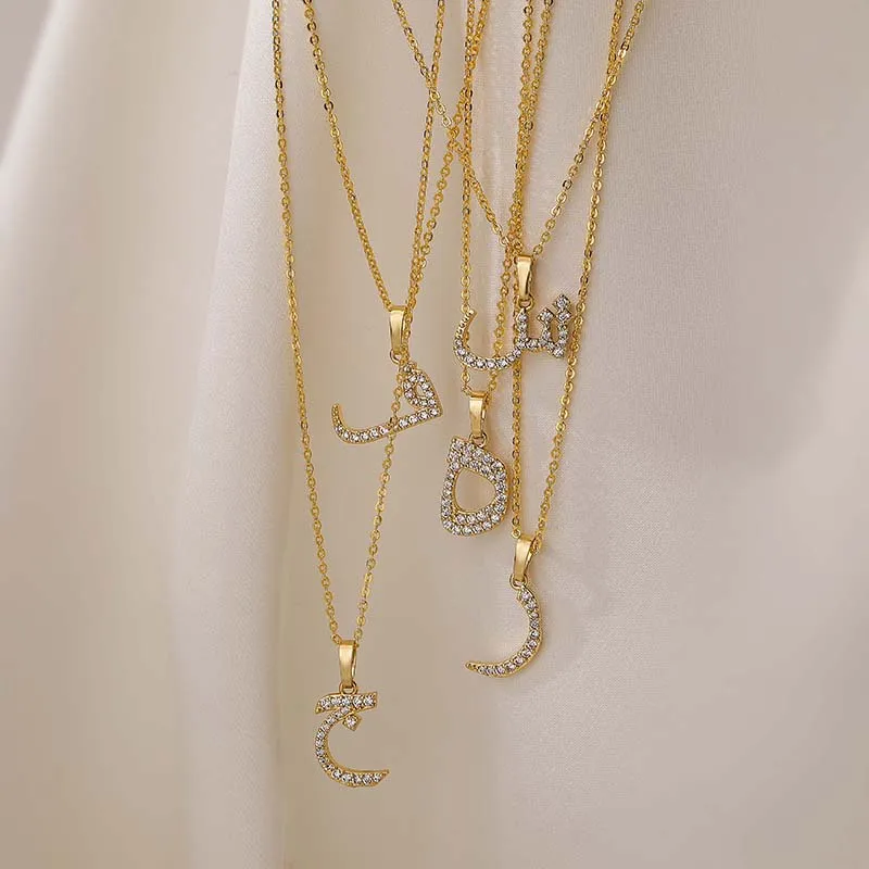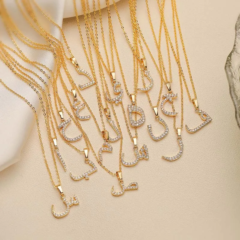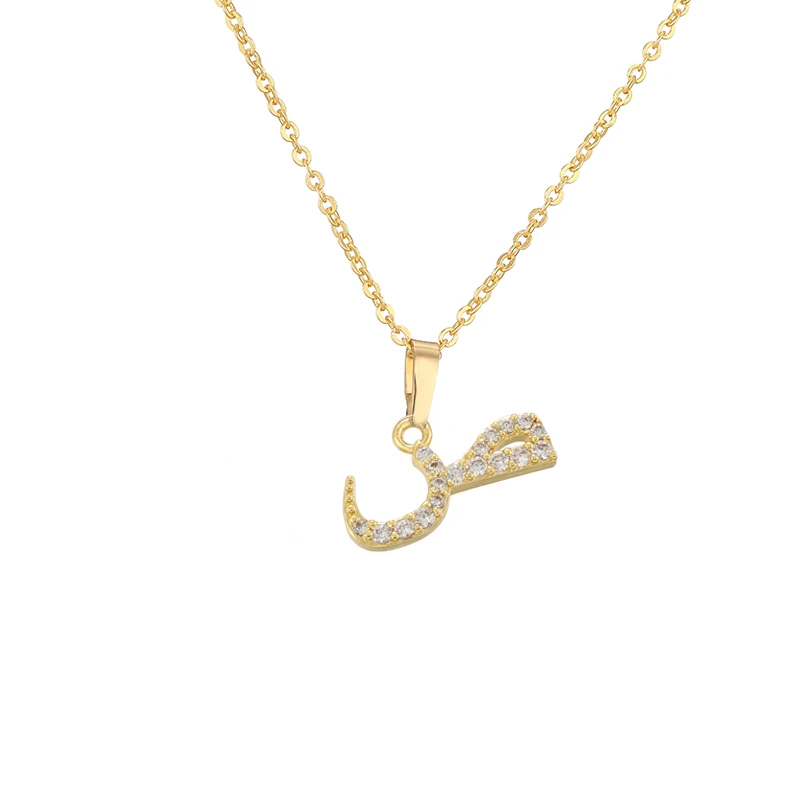 HECHENG Arabic Letter Name Inlaid CZ Stone Pendant Necklace Brass Chain Letter Pendant Necklace Women's Gift Jewelry