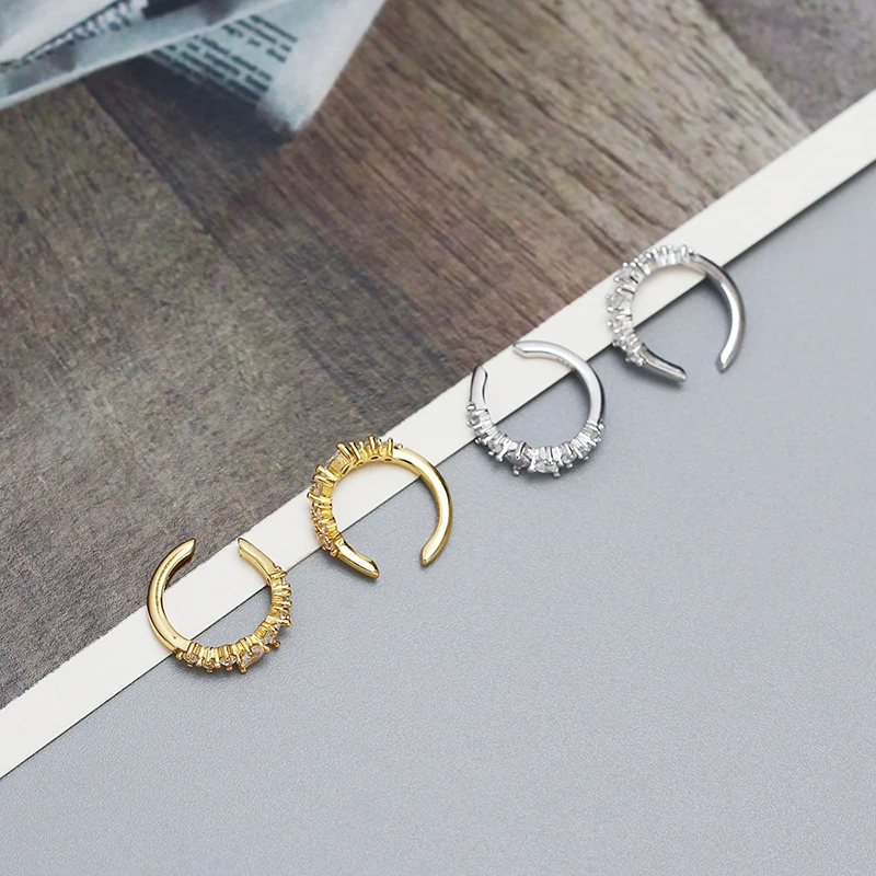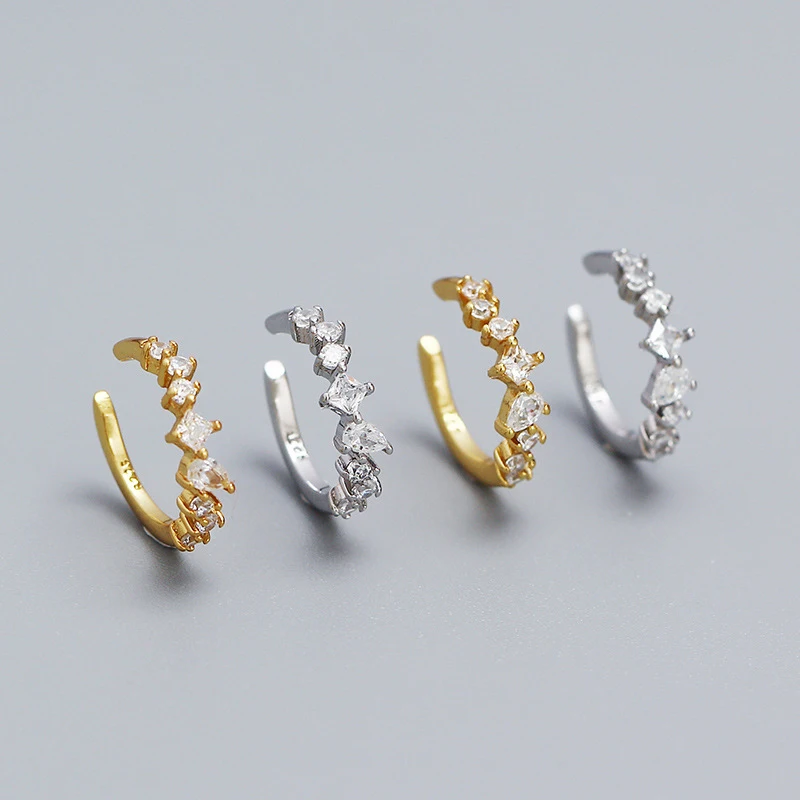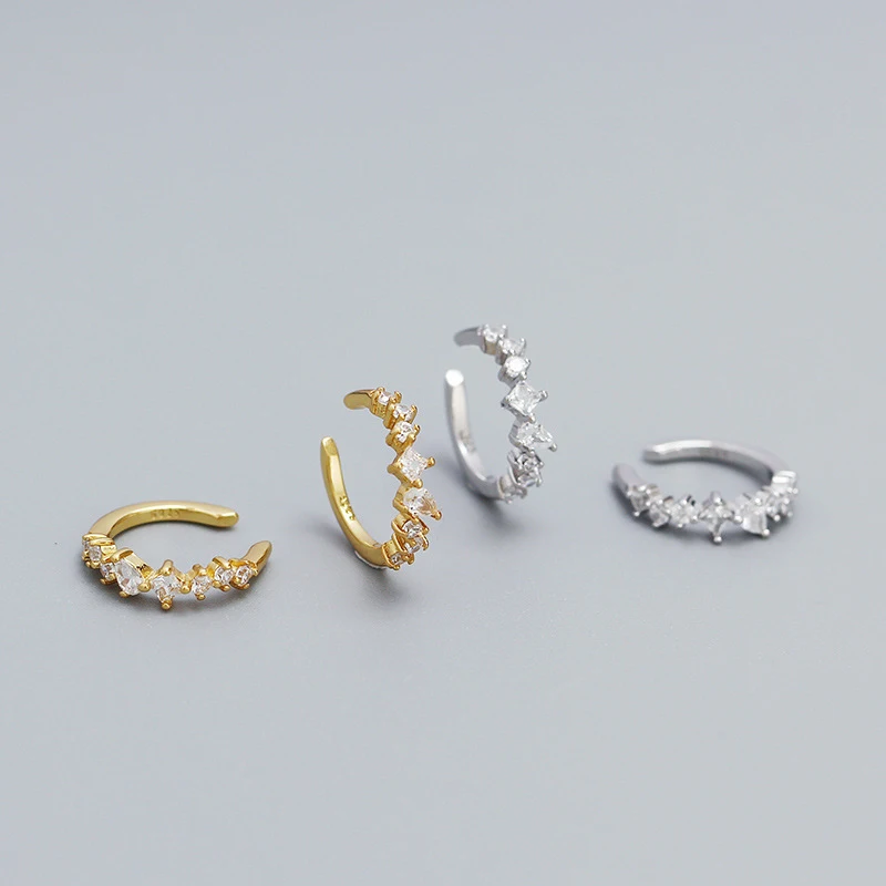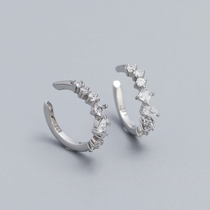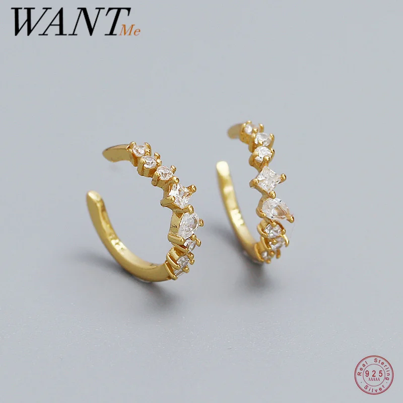 WANTME 925 Sterling Silver Fashion Personality Shiny Zircon Ear Clips for Women Simple Charm No Piercing Cuff Earrings Jewelry