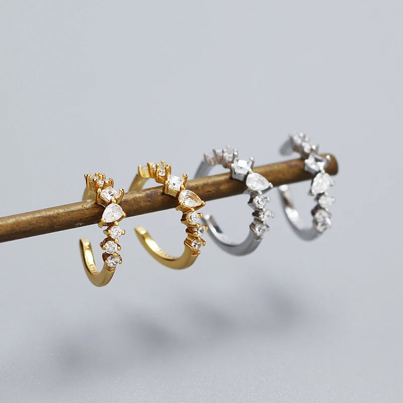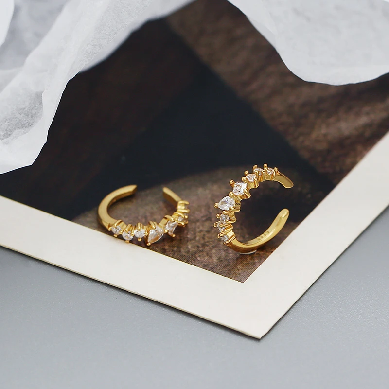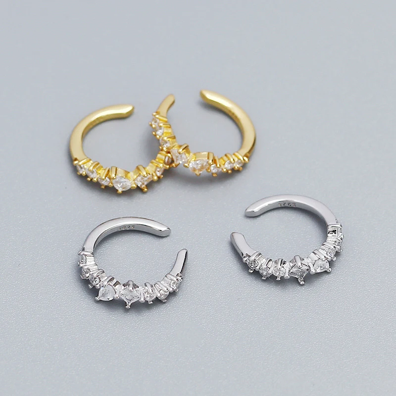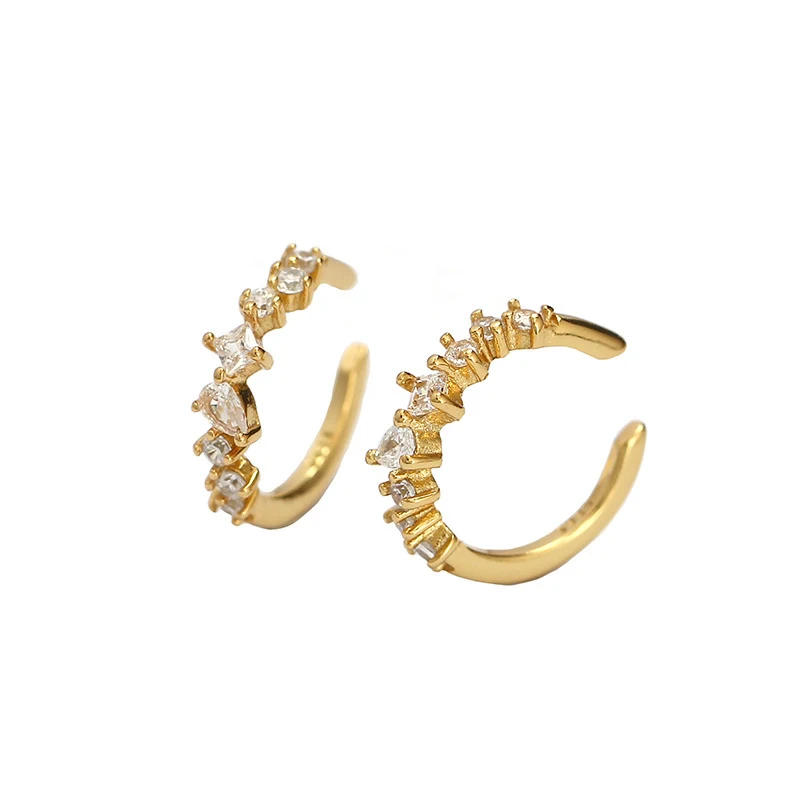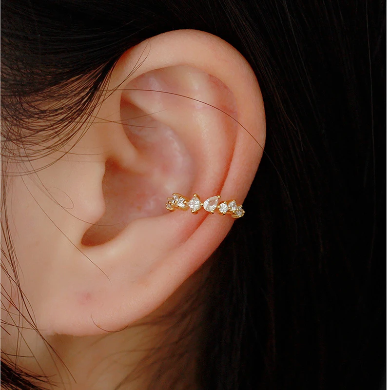 WANTME 925 Sterling Silver Fashion Personality Shiny Zircon Ear Clips for Women Simple Charm No Piercing Cuff Earrings Jewelry
