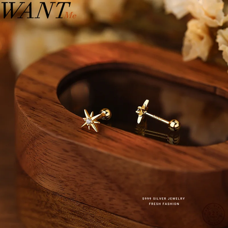 WANTME 925 Sterling Silver Fashion Simple Romantic Light Star Screw Bead Stud Earrings for Women Birthday Party Piercing Jewelry