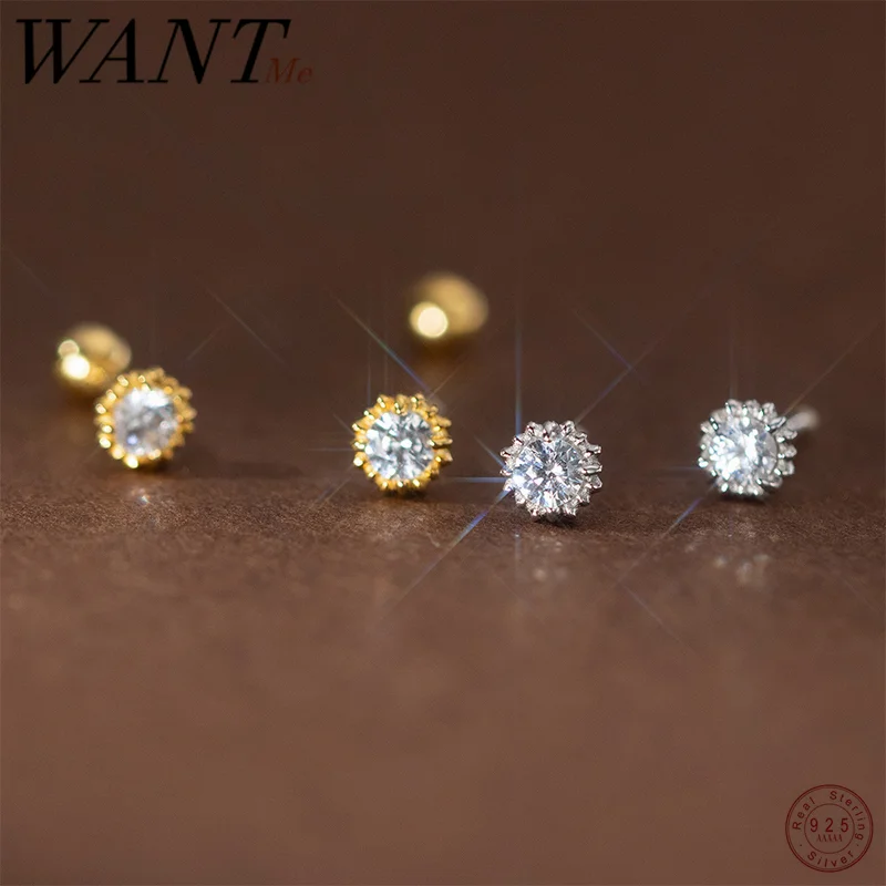 WANTME 925 Sterling Silver Shiny Simple Sunflower Screw Beads Piercing Stud Earrings for Women Fashion Birthday Party Jewelry